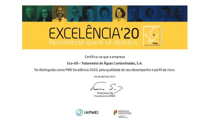 A Eco-Oil foi distinguida com a marca “PME Excelência”, o que é um reconhecimento do desempenho financeiro da empresa. De acordo com o site do IAPMEI, “Trata-se de um selo de reputação que permite às empresas relacionarem-se com a sua envolvente - fornecedores, clientes, sistema financeiro e autoridades nacionais e regionais - numa base de [...]